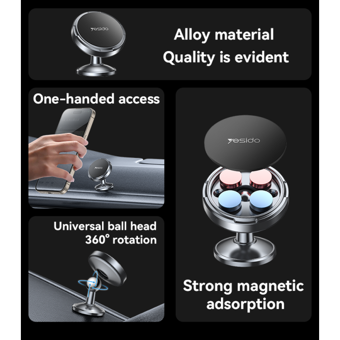 YESIDO 360 Rotation Zinc Alloy Strong Magnetic Force Mini Paste Magnetic Suction Phone Holder - C215