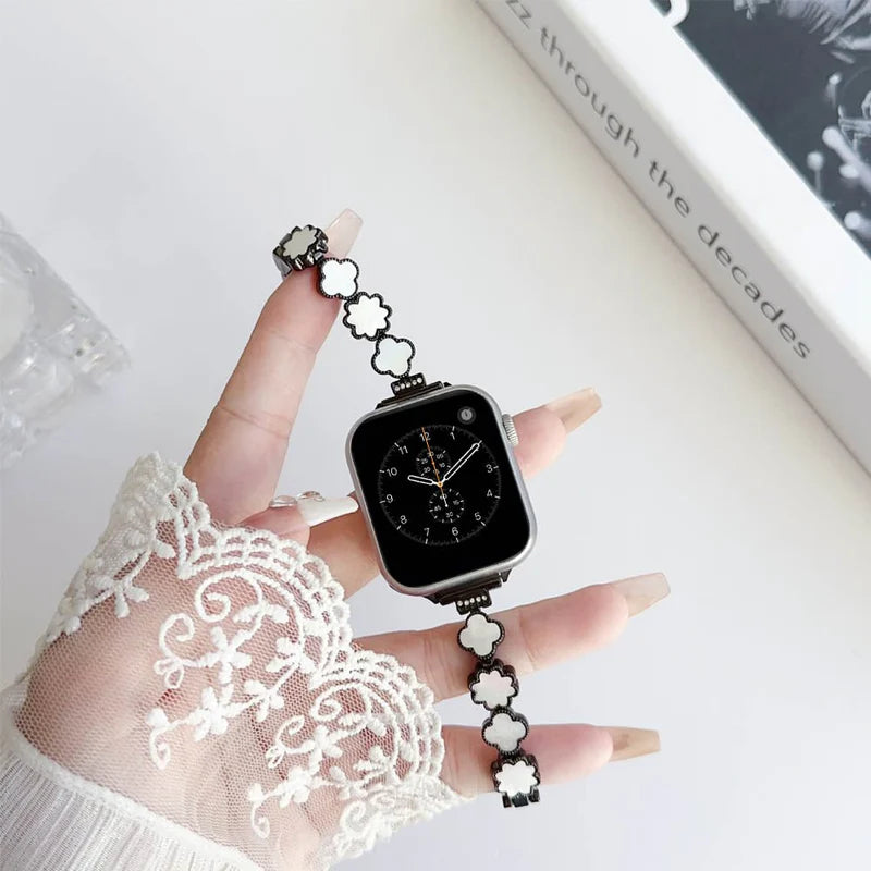 Luxury Clover Floral Metal Strap for Apple Watch
